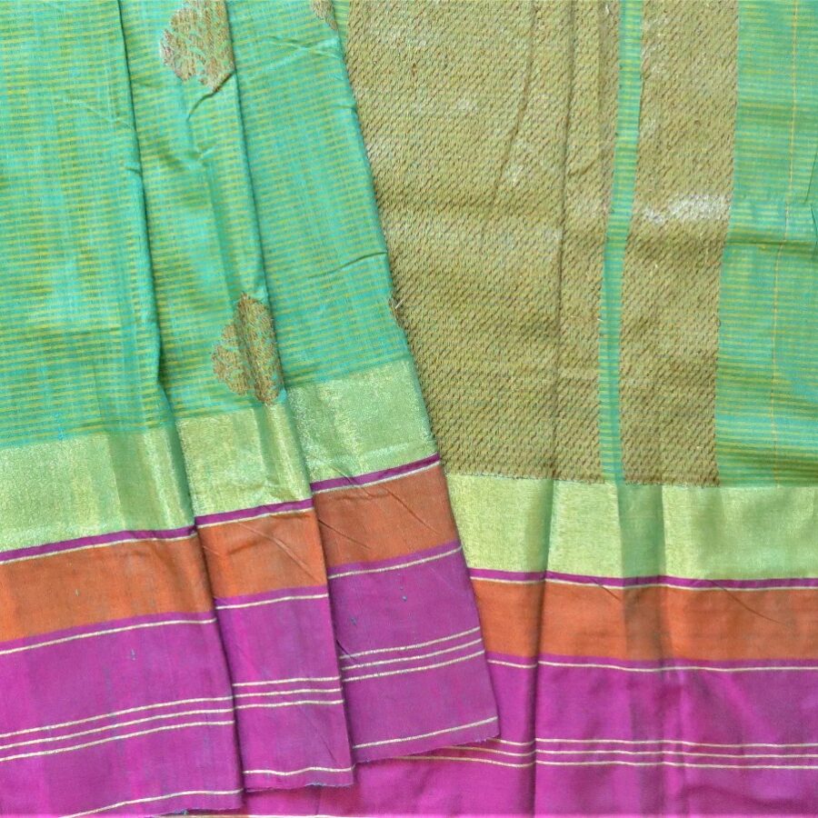 Handwoven Dupion silk saree in stripes with zari palla n booti allover . Saree with blouse