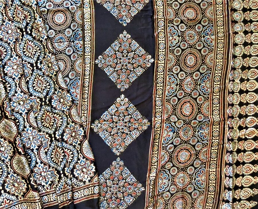 Mul cotton saree enrich with Ajrakh handprint. Saree is with blouse