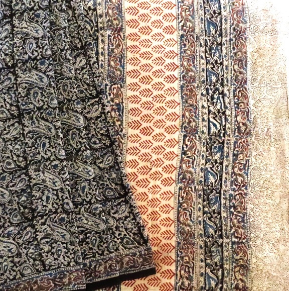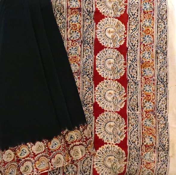 Cotton saree enrich with floral/peacock kalamkari handprint. Saree is with blouse