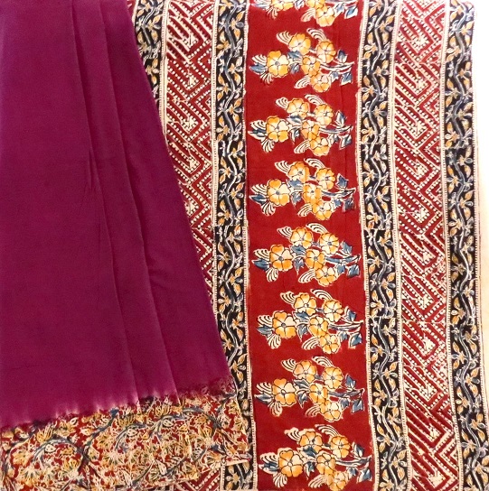 Mul cotton plain saree enrich with kalamkari handprint at border /palla . Saree is with blouse