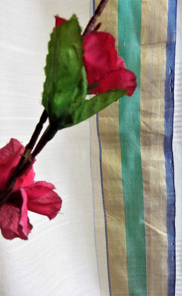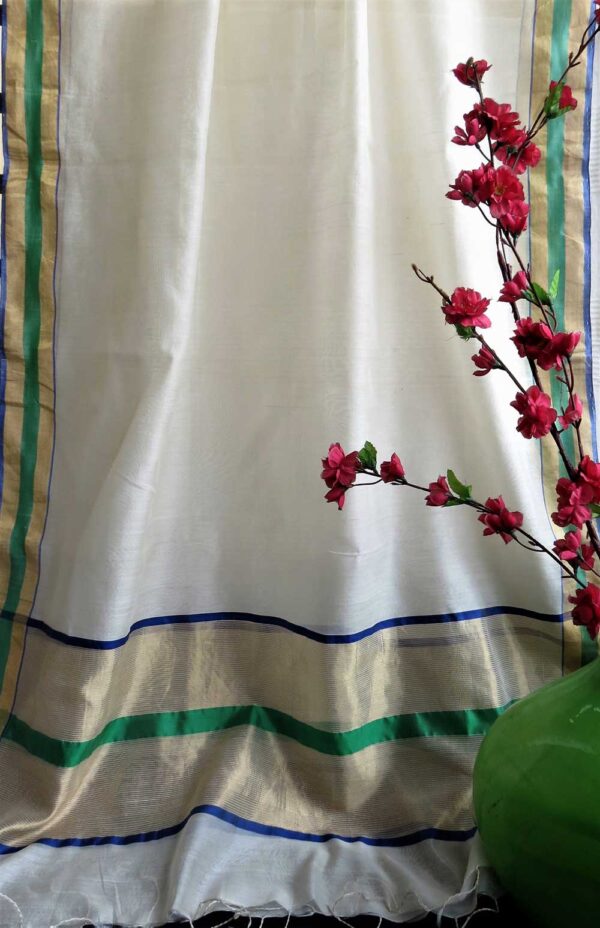 Handwoven chanderi dupatta with silk and zari borders and zari stripes on side borders