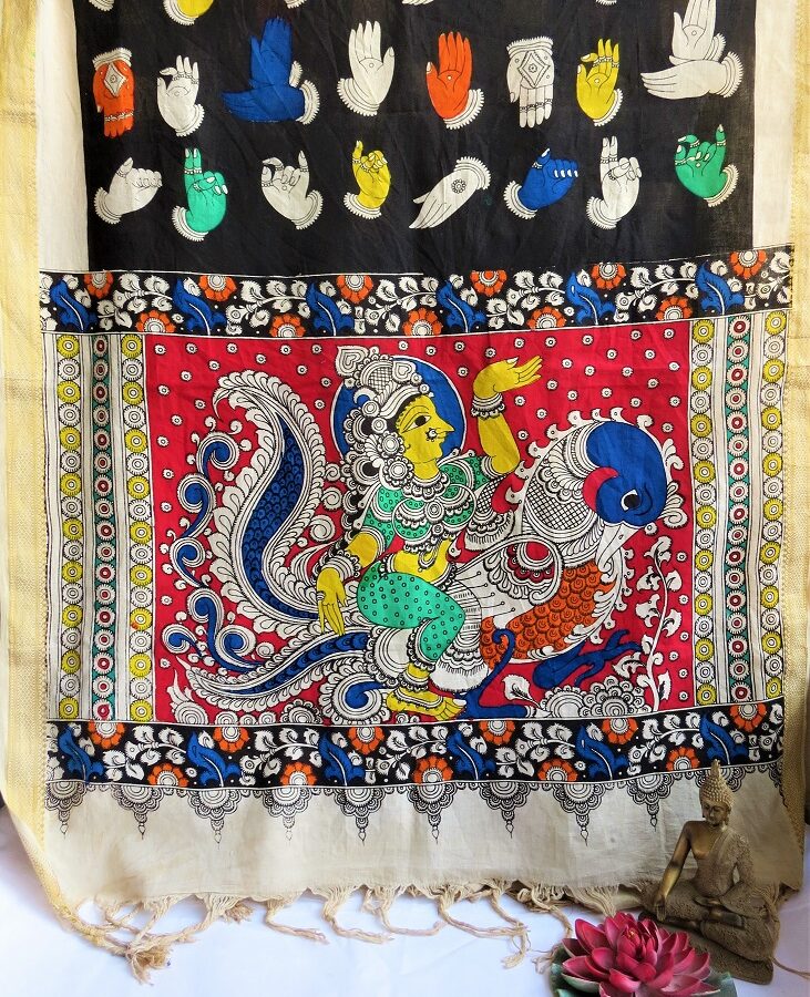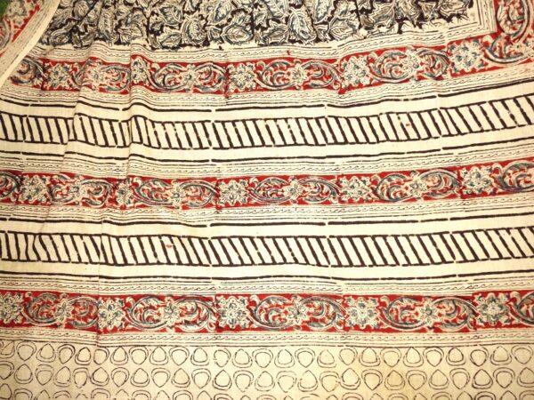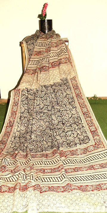 Mul cotton kalamkari hand block print dupatta. Natural colors used for print.