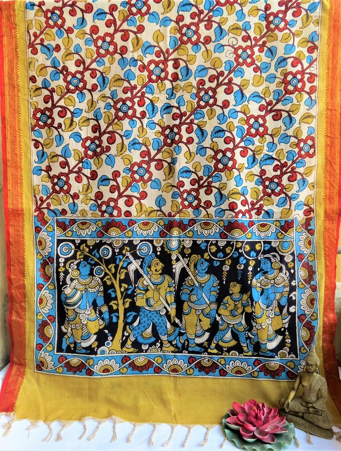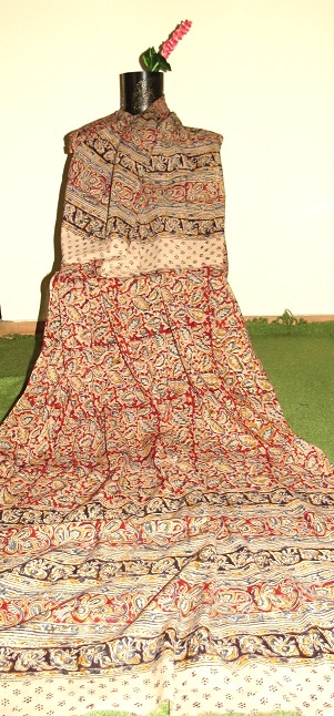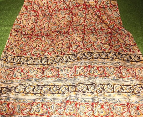 Mul cotton kalamkari hand block print dupatta. Natural colors used for print.