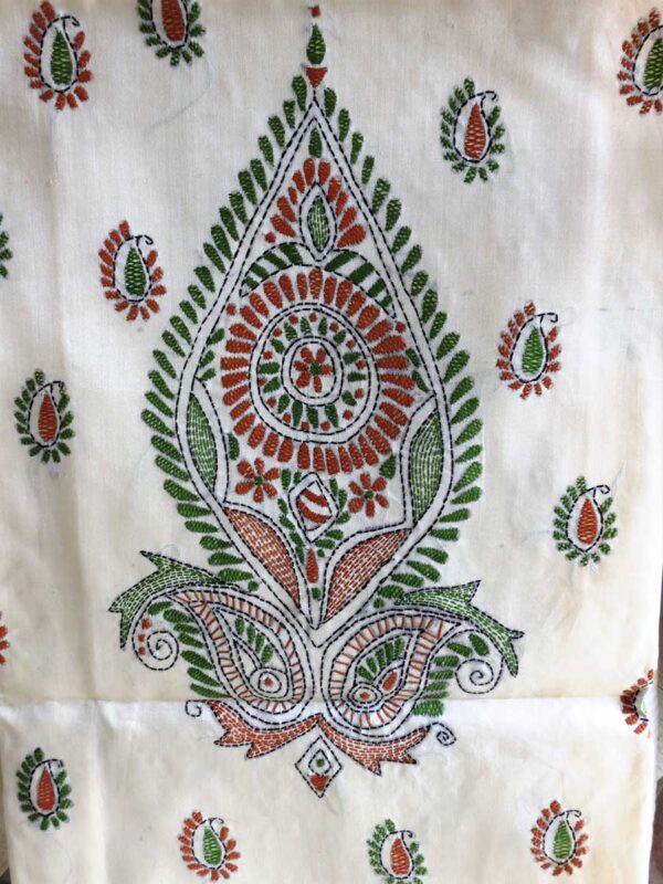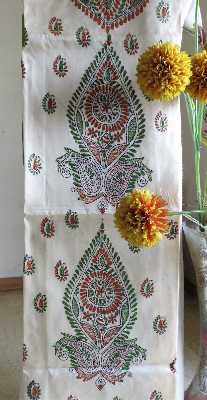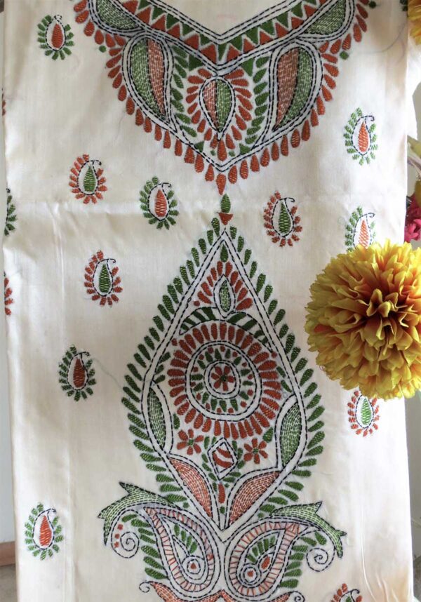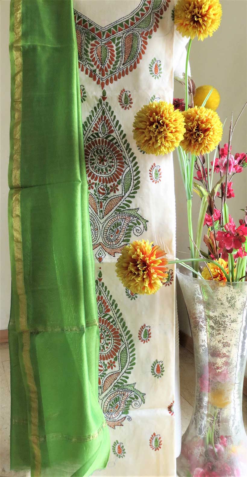 Pure Silk Kurta with kantha stitch hand embroidery teames with handwoven chanderi dupatta